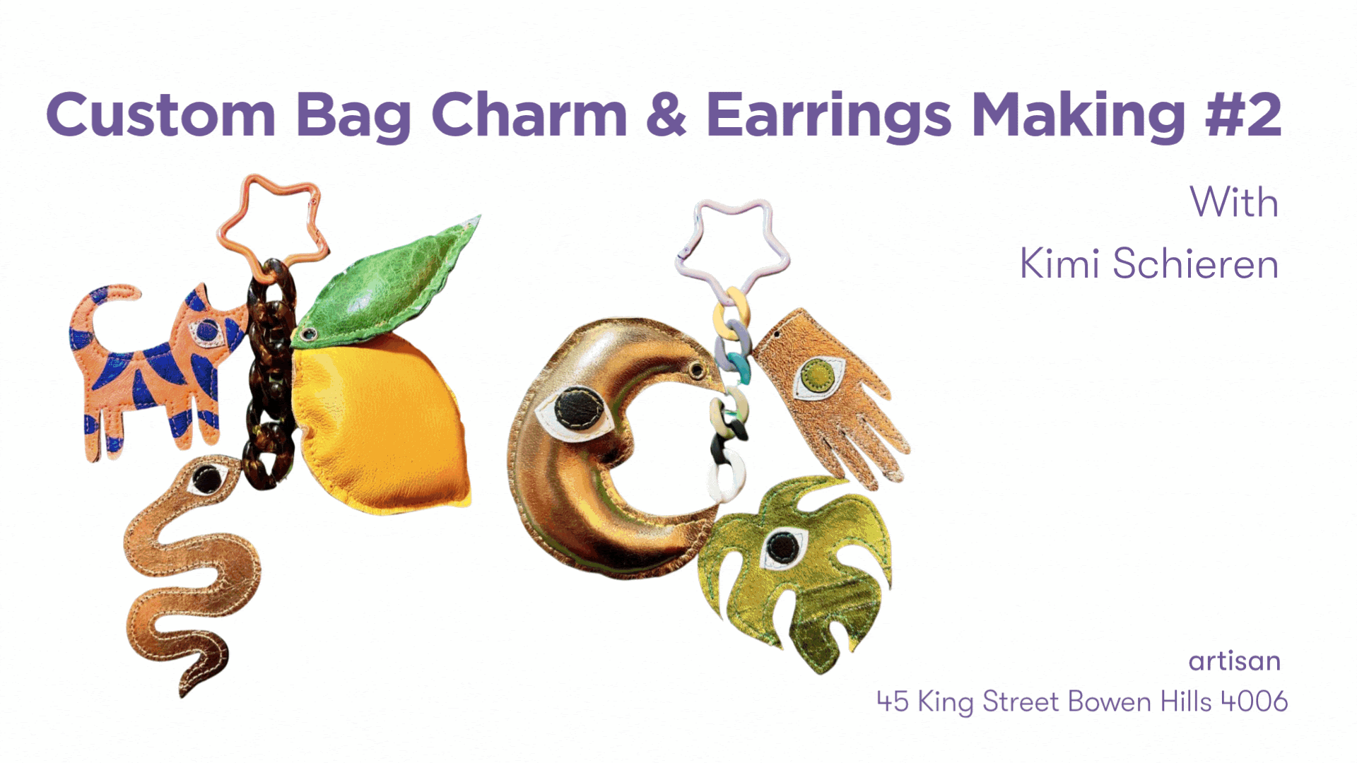 In this hands-on session, participants will create their own custom bag charm and earrings, drawing from a vibrant array of handmade components. Guided by Kimi, you’ll learn about her creative process and discover how she sources sustainable and vintage materials to craft her distinctive leather accessories.