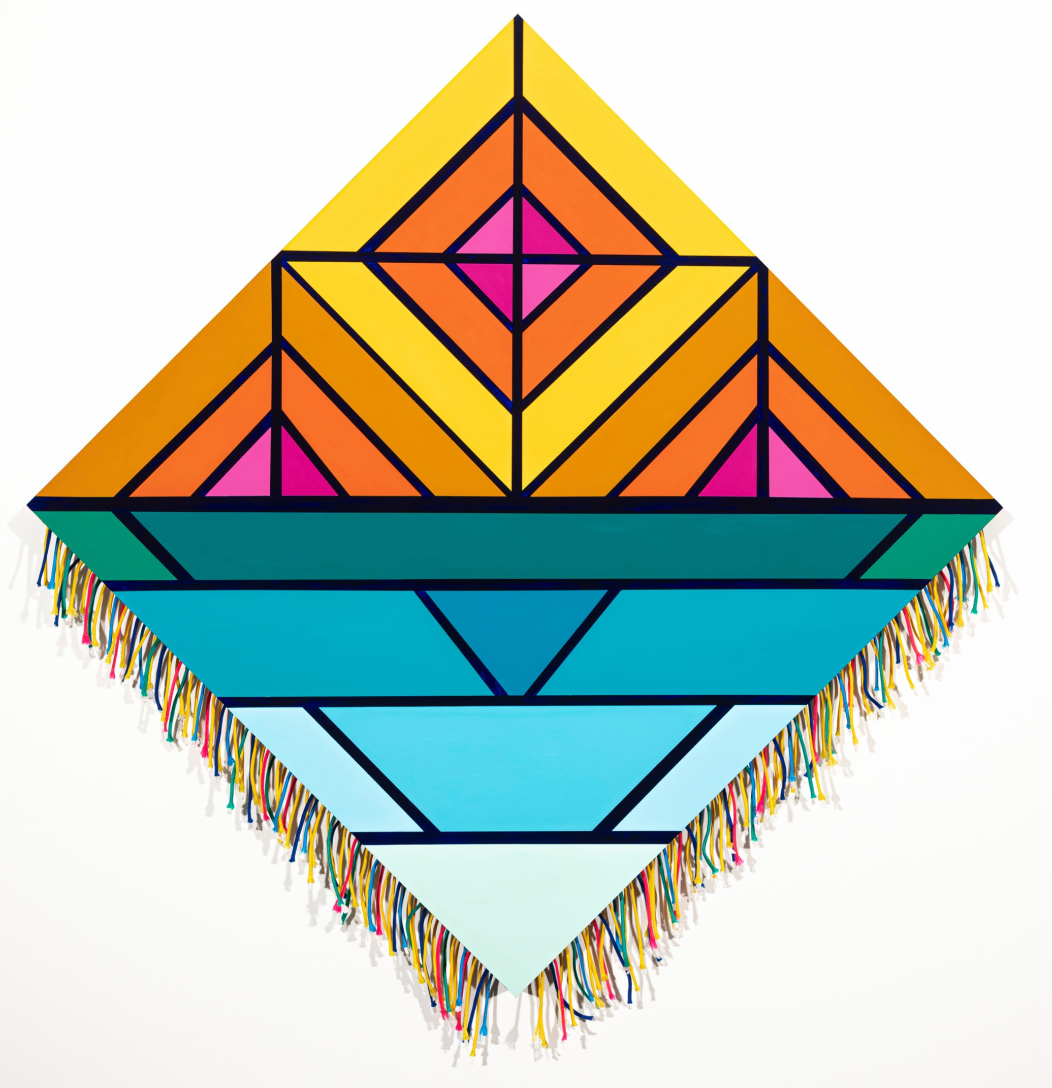 Samuel Tupou, Horizon Dreams, 2025, acrylic on plywood and polypropylene rope, 64 x 64cm.